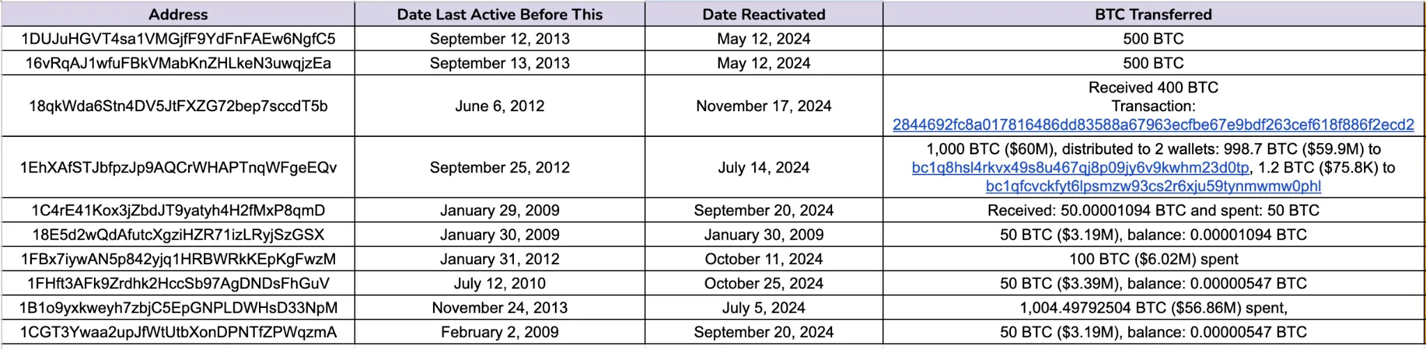 考古 2024 “重现江湖”的十大比特币巨鲸:最高转移超 1000 枚 BTC,最低成本不足 1 美元