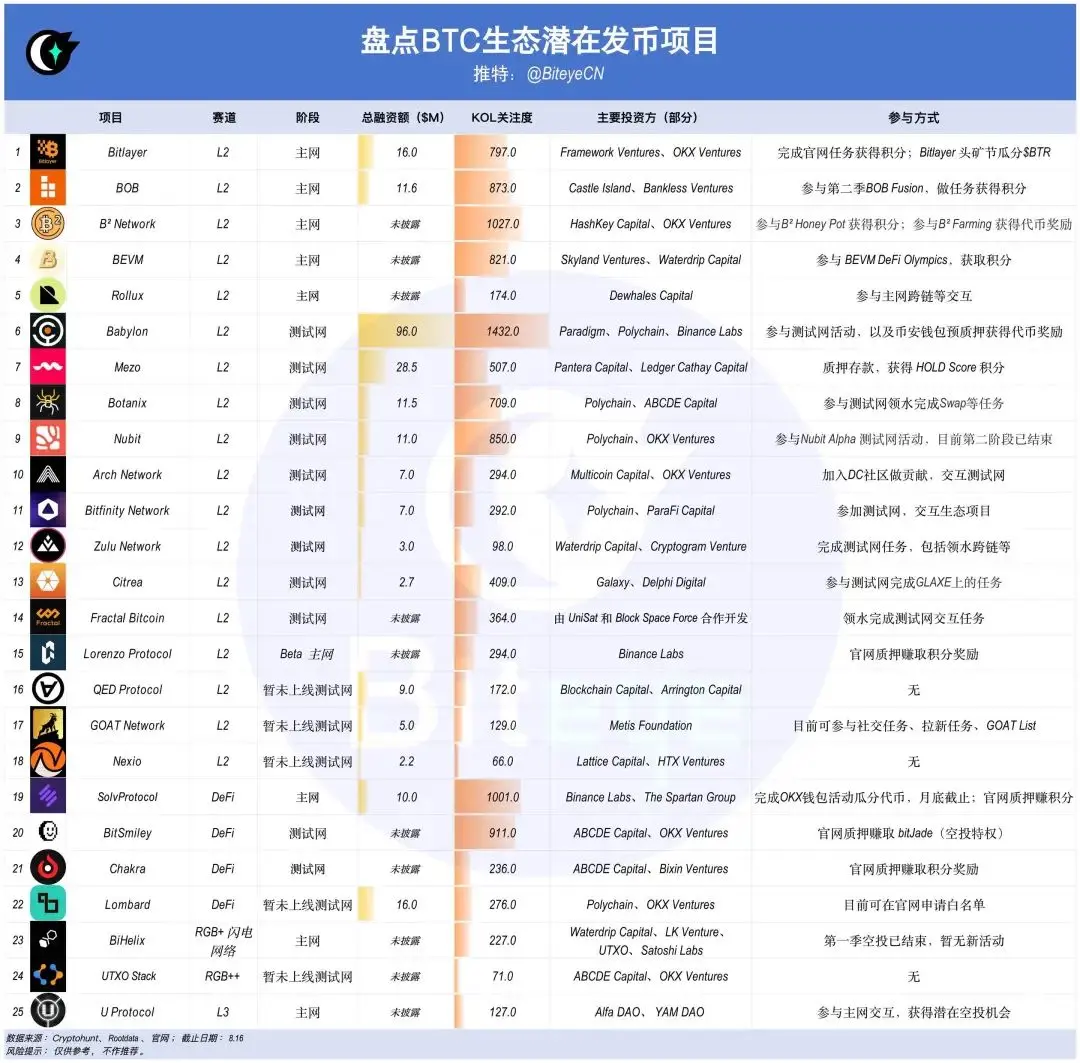 下半年牛市爆发,你必须了解的 BTC 生态未发币项目