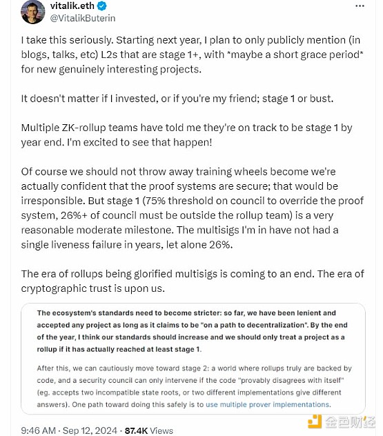 Vitalik:至少未达到“第一阶段”的 L2 已经死了