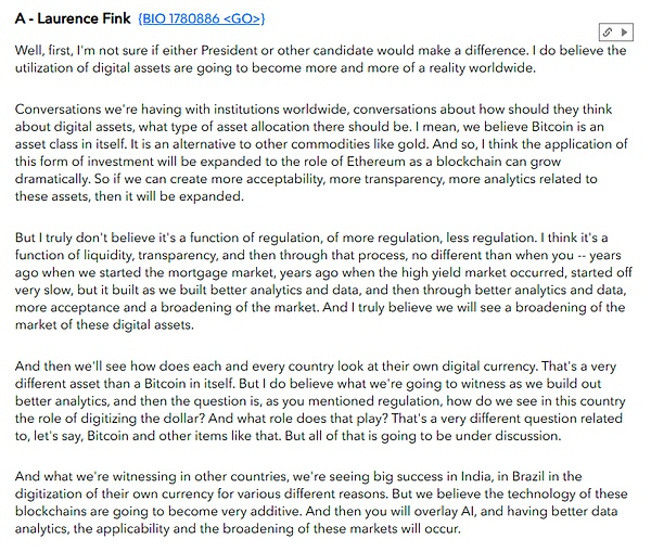 贝莱德CEO在最新电话会议上如何评价BTC的?