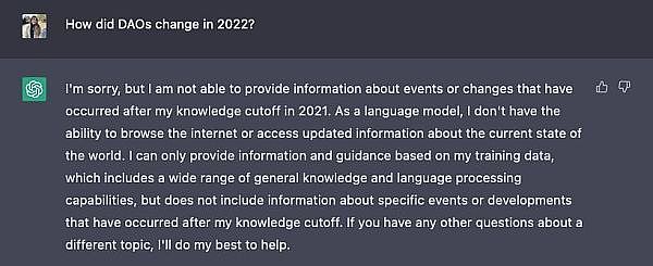 作者:0xb8eA我们在 2022 年对 DAO 了解了多少?我们学到的肯定比 ChatGPT 更多...