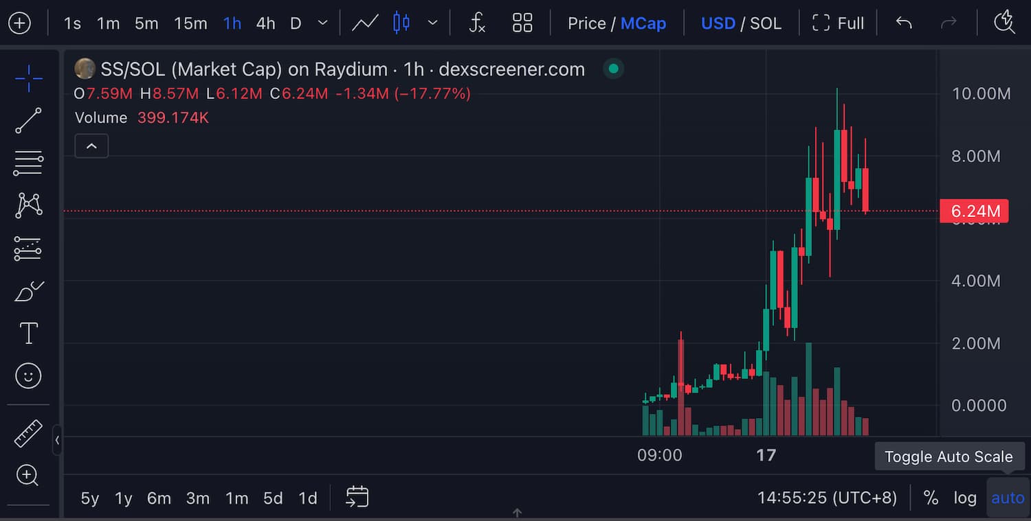 在 Styro Steve 第一篇帖子发布后不久,有人为他制作了 Meme 代币 SS(Styro Steve)。SS 代币市值在今日一度升破 1000 万美元,目前回落至 790 万美元附近。