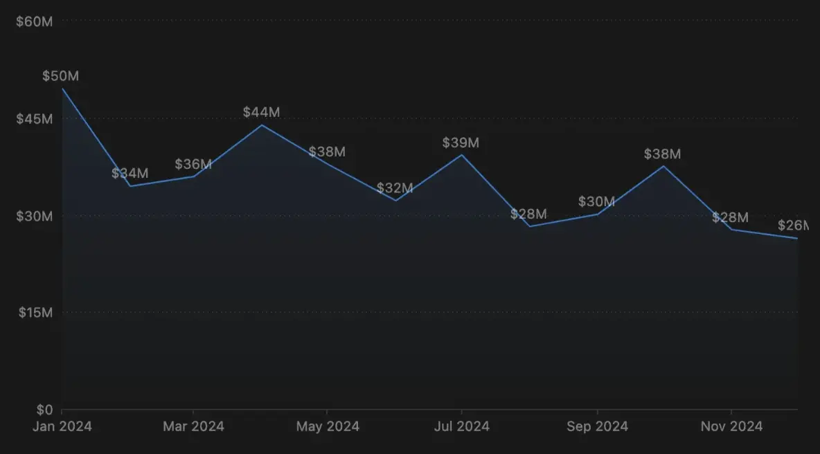分析交易量数据和与风投资本部署及 TGE 趋势相关的领域变化后,可以发现全年融资轮的平均估值呈下降趋势。