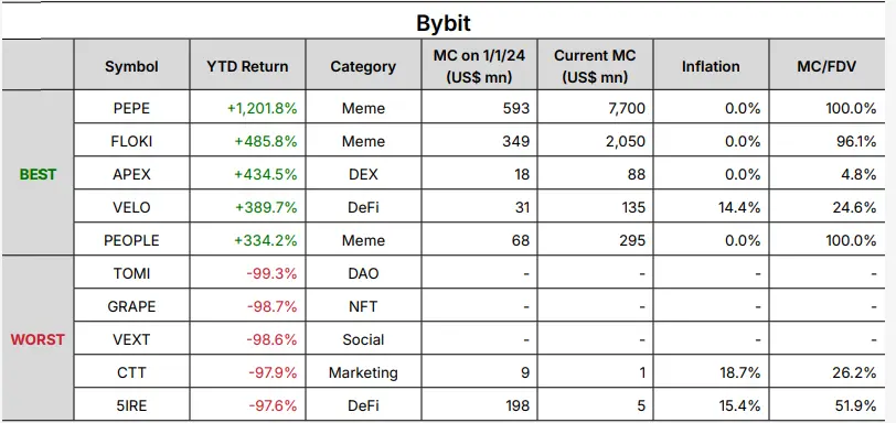 在运作良好的市场中,资产价格凝聚了群体智慧,形成动态信号,反映市场叙事、主题和趋势。因此,回顾蓬勃市场中表现最佳和最差的项目,是反思过往的有效方式。以下将展开这方面的详细分析。