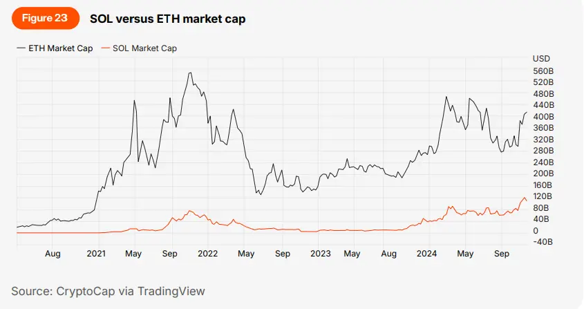 · Solana 的链上交易量超过了以太坊及其所有 L2 网络的总和