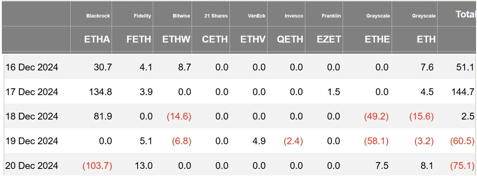 上周,美国以太坊现货 ETF 净流入 6270 万美元,总资产净值增至 121.5 亿美元,平均单日成交额达 9.12 亿美元。12 月 19 日以太坊现货 ETF 交易额达 12.6 亿美元,创历史新高。