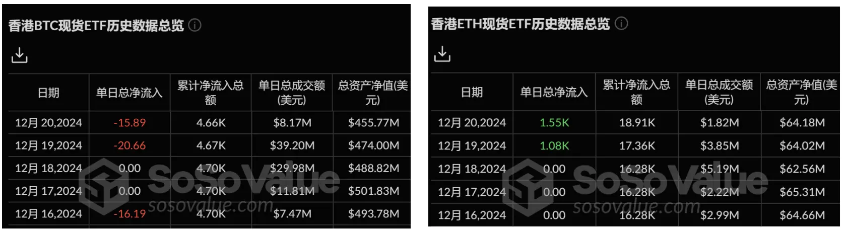 香港以太坊现货 ETF 连续三周呈现资金流入趋势,净流入 2630 枚以太坊,资产净值达 6418 万美元。12 月 20 日单日净流入达 1550 枚 ETH,创历史第三记录。