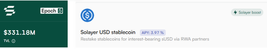 Solana 生态再质押协议 Solayer 启动了生态内的 USDC 质押选项,并享有协议内的 Boost 功能以累加激励。至今,Solayer 的质押规模约为 3.3 亿美元。作为主流资产的再质押协议,Solayer 可以是下一个为稳定币持有者提供更多潜在收益的地方,并且这种质押可以以更安全的形式存在,适合希望规避加密资产价格波动风险但又不想错过 DeFi 收益机会的用户群体。