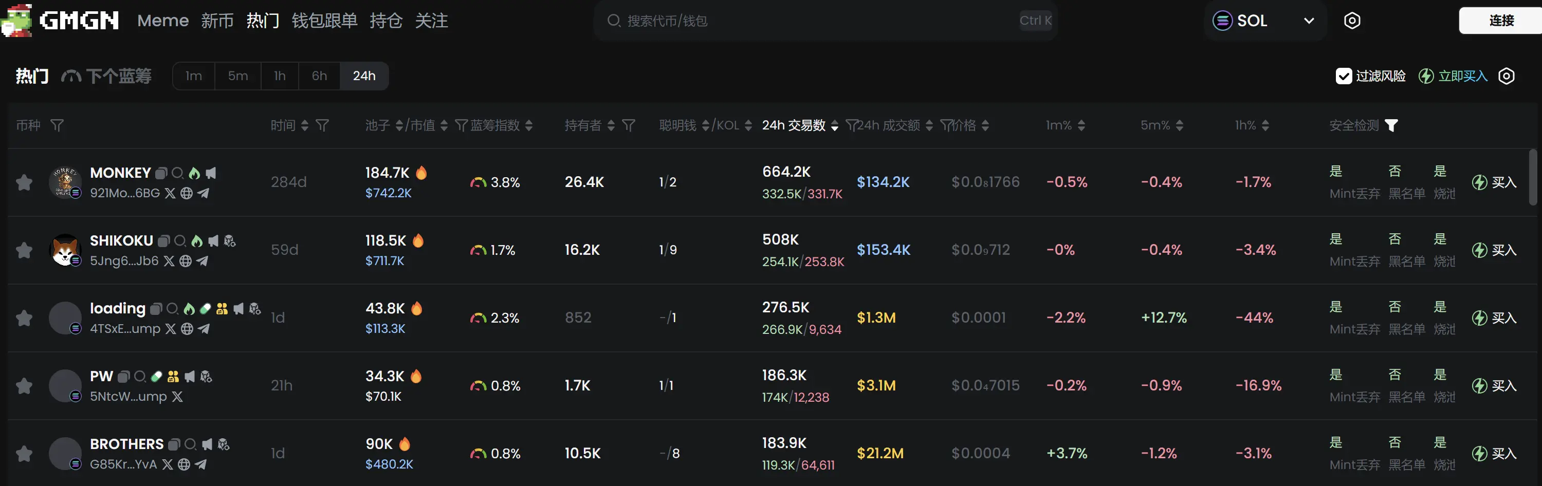 根据 Meme 代币追踪和分析平台 GMGN 行情数据显示,截止 12月23日 19:40 :