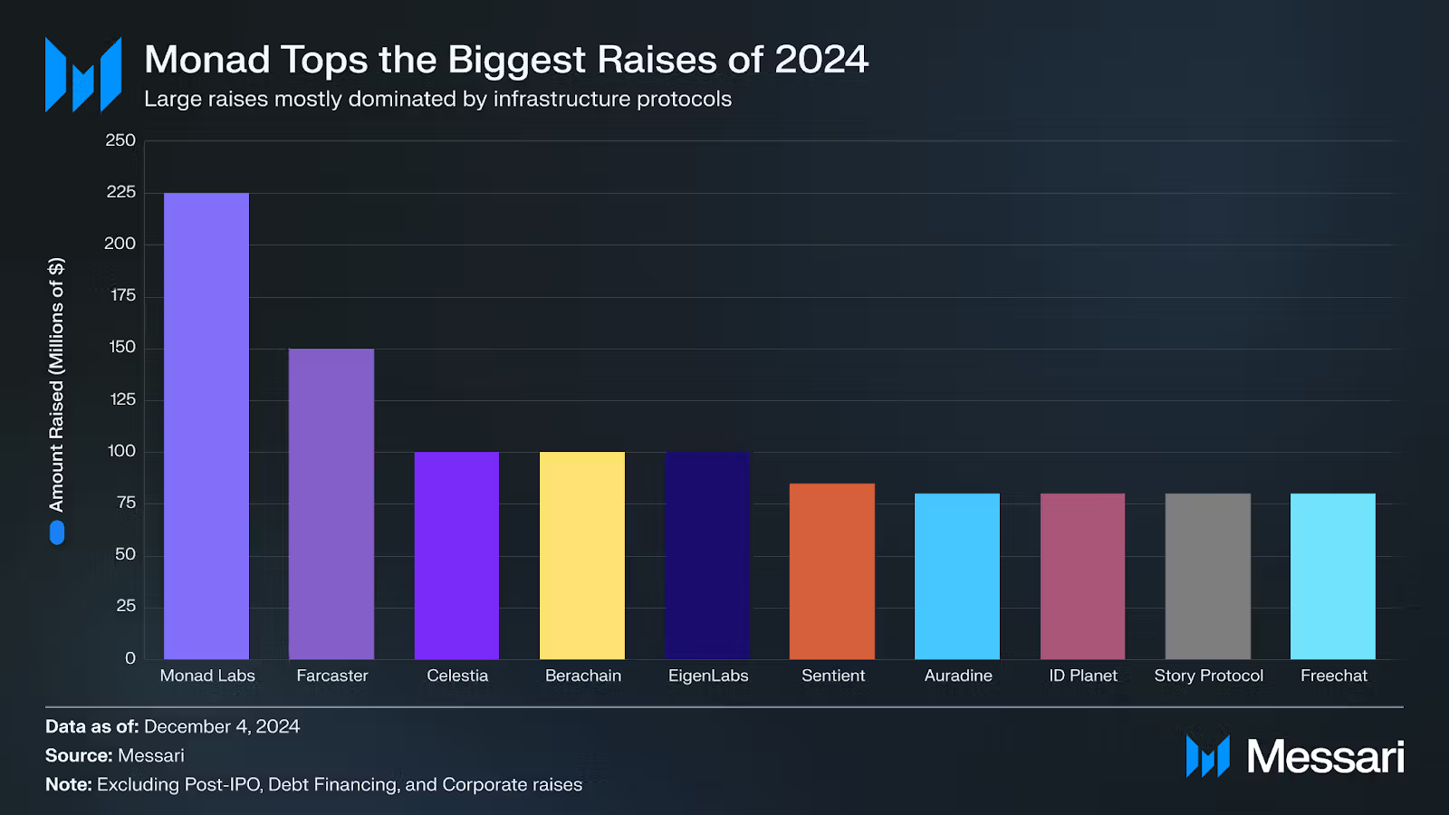 · Monad Labs:4 月份筹集了 2.25 亿美元,显示基础设施和 L1 项目仍然是 VC 的重点投资领域;