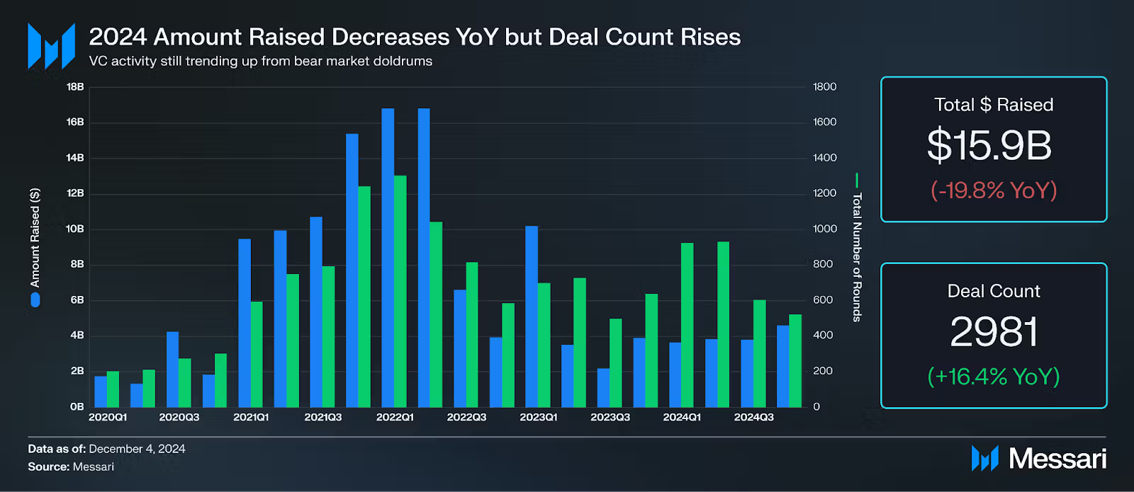 除 AI 和 DePIN 外,2024 年还出现了几个值得关注的融资趋势: