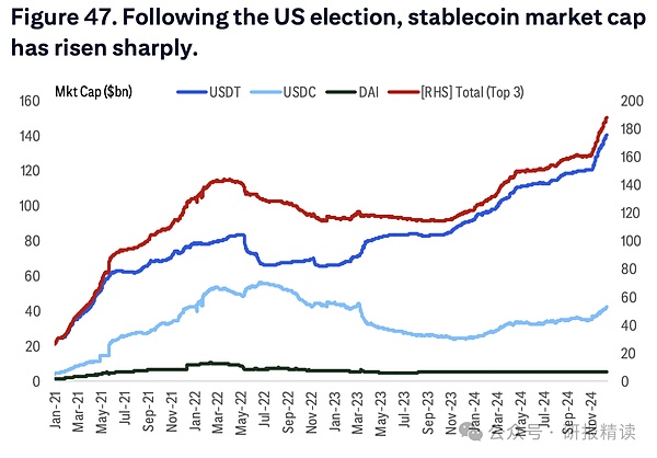 监管态度也在转向积极。据JPMorgan研报,随着美国新政府上任,预计将出台更清晰的稳定币监管框架。同时,新加坡和日本等国已开始推进稳定币相关立法,为市场注入制度性信心。