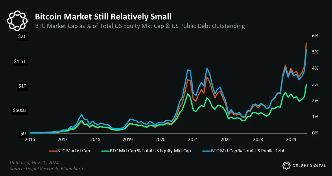 尽管比特币已经吸引了广泛关注,但其增长潜力依然巨大: