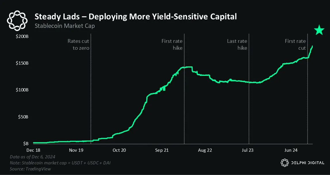 市场缺失的两大关键因素——稳定币增长和信贷扩张——正在重新出现。随着利率下降和监管环境的改善,投机行为预计将重新活跃,从而缓解当前市场的不平衡。稳定币在交易和抵押中的核心作用将对市场复苏起到至关重要的作用。