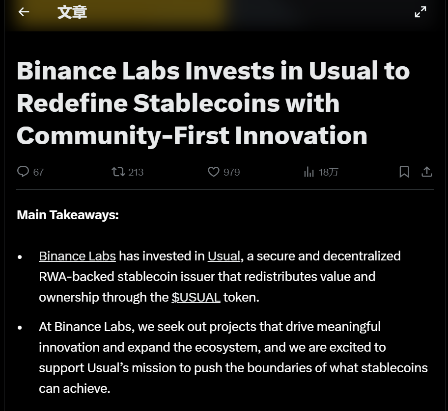 2. 币安孵化器投资 Usual,以社区优先的创新重新定义稳定币,@BinanceLabs