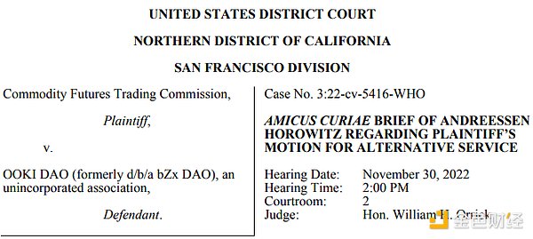 随后,Web3 投资机构 Paradigm Operations 以及 a16 z 均向法院提交了法庭顾问简报,声援 Ooki DAO。双方均表示 CFTC 仅仅通过治理投票就要求 DAO 成员/代币持有人承担 DAO 的责任是不合理的,a16 z 的总法律顾问 Miles Jennings 进一步表示,应该将重点关注在那些对 DAO 非法行为进行治理投票的成员而非整个 DAO 的成员。
