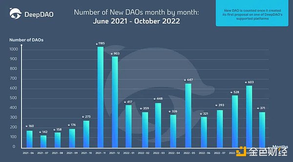 在今年5月至10月的6个月中,2863个DAO开始了他们的治理活动。如下图所示,这是2021年的两倍多。
