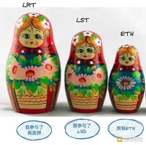 用 ETH 可以套出 LST,而用 LST 可以套出 LRT。当你手上拥有三层套娃时,你可以用这三个玩偶分别去做不同的事情(质押、再质押、其他生息手段),套娃每套一层,你就多了一层用流动性博取收益的机会。