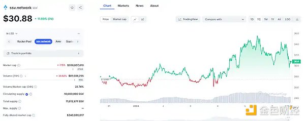 但是,SSV 代币在最近一周的涨幅并不明显。考虑到其已经在流动性质押赛道为人熟知,且进行再质押业务属于专业对口,3 个亿左右的市值算不上特别高,后续仍可以期待再质押叙事下的表现。