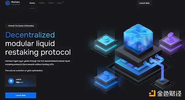 从该项目的名字就可以看到,Restake Finance 专注于做 EigenLayer 再质押相关的业务。