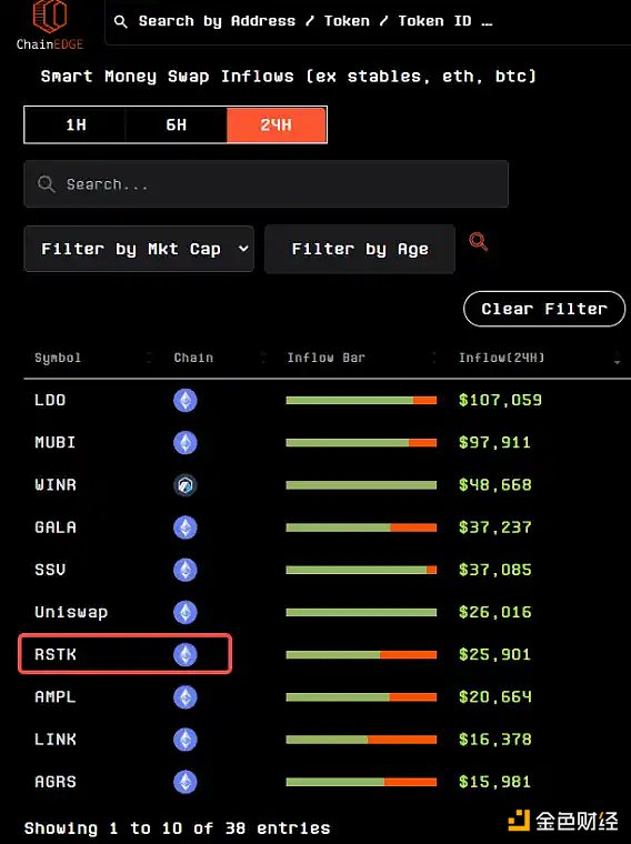 从 12 月 20 日开盘,截止发稿时 RSTK 上涨接近 20 倍左右;但其市值仅为 3800 万美金,且根据笔者观察最近一周每天都有聪明钱购入数量不等的 RSTK。