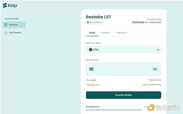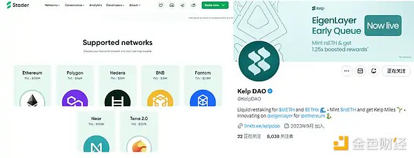 Stader 同时扶持了一个名为 Kelp DAO 的组织,专注于做流动性再质押。而业务模式也与 Restake Finance 大同小异: