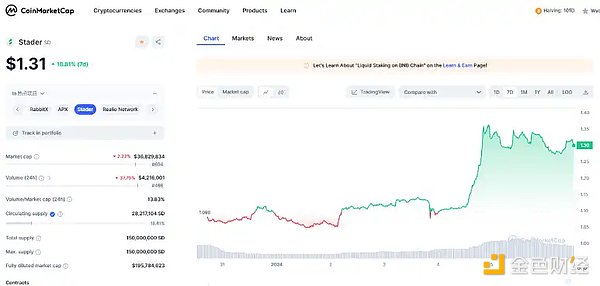 在代币方面,由于 Kelp DAO 目前没有代币,因此有明牌关联的 Stader Labs 的代币 SD 则可以成为关注对象。