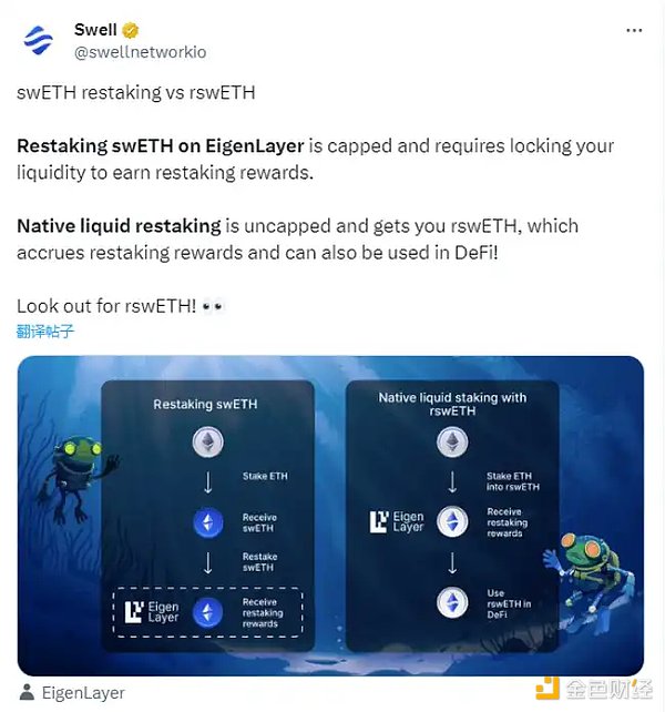 Swell 之前在以太坊上做流动性质押,最近宣布了再质押功能,可以将 ETH 存入换出 rswETH。