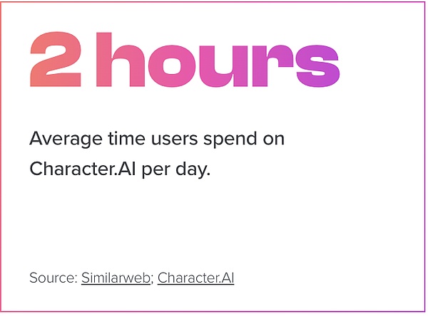 根据 SensorTower 的数据,Character.AI 平均每个用户每月有 298 次会话,而 Poly.AI 平均每个用户每月有 74 次会话。