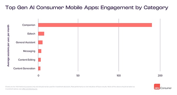 a16z 开始看到更广泛一组伴侣应用的早期迹象,这些应用超越了 AI “男友”和“女友”,包括用于友谊、指导、娱乐,乃至最终的医疗保健。