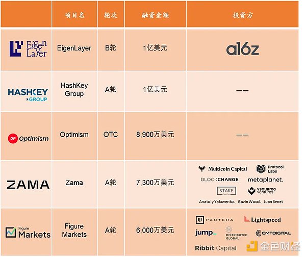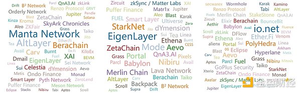 上榜项目多数获得知名机构的大额投资,例如EigenLayer在2月22日完成1亿美元B轮融资,这是第一季度最大的单笔融资。io.net 在3月5日以10亿美元估值完成A轮融资。