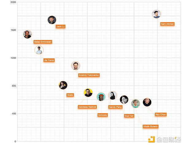 2024年第一季度始终出现在热搜榜单的有12人,搜索量最高的人物是Sam Altman,他是OpenAI创始人兼CEO、Worldcoin联合创始人。紧随其后的是Jack Lu, 他是NGC Ventures合伙人,也是BounceBit、Bitune、Bounce、Chainswap等多个热门区块链项目的联合创始人。此外,Balaji Srinivasan、Jia Yaoqi、Anatoly Yakovenko人气高居不下。