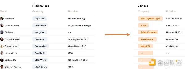当项目完成 TGE 事件,通常会有伴随较多人员变动。前LayerZero战略主管Irene Wu已加入Bain Capital Crypto担任风险合伙人;zkSync DeFi前负责人Sebastien已离开岗位,成为zkSync模块化区块链Sophon联合创始人。