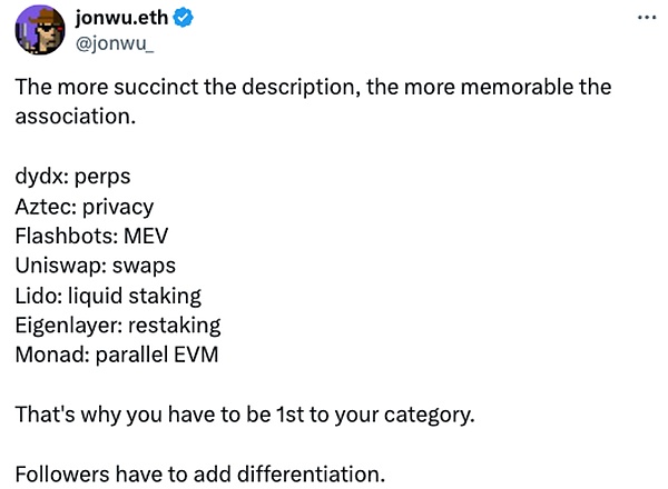 对于用户来说,叙事往往是最直接也最容易理解的一点。很多 Infra 项目面临的问题是,项目的概念过于晦涩难懂——很难指望每个用户了解 ZK、FHE 等密码学的原理或者类似开发者工具的东西,以及他们带来的好处。但我们可以尝试传递一些简单的信息,例如把这些抽象成一串字母或者词组:ZK、FHE、Restaking,等等。
