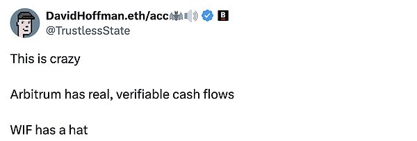 Token 在一定程度上反映了市场对于项目的共识。就拿上述的例子来讲,Arbitrum 作为 TVL 最大的 L2,拥有强劲的现金流是共识;dogwifhat 的帽子共识也是共识。市场想要什么样的 token?市场 buy in 什么样的 token?我从utility 和投机两点去理解。