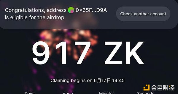 如账户“0x65f8dfc419b418ae82f289059d038428d038cd9a”获得了917个ZK,而该钱包地址无论以太坊主网,还是lite网,还是era网,全部0交互0余额。