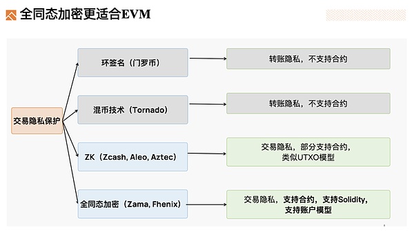同时,在交易隐私保护方面,全同态加密也更适合EVM。因为: