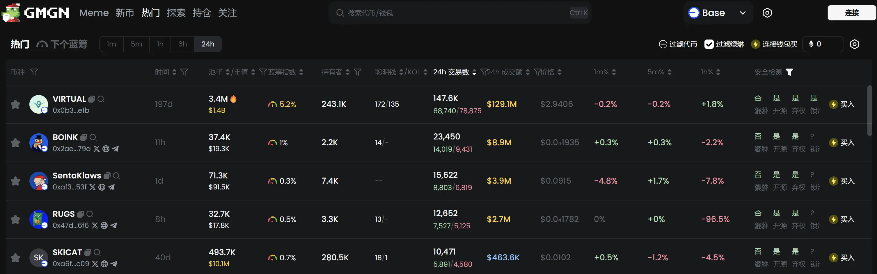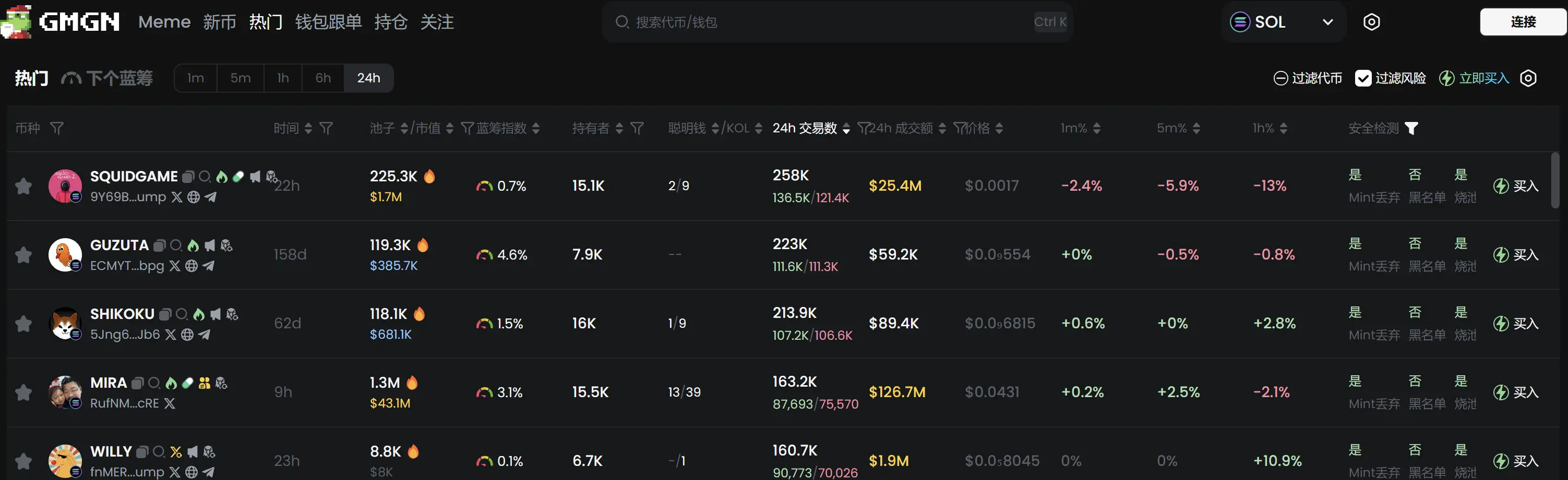 根据 Meme 代币追踪和分析平台 GMGN 行情数据显示,截止 12月26日 19:50 :