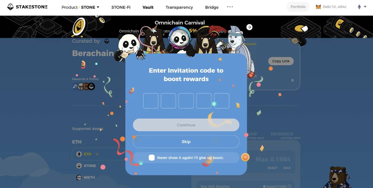 在这种需求之下,全链流动性资产协议 StakeStone 推出了专为 Berachain 生态设计的创新产品 Berachain Vault,成为 Berachain 官方首推的全市场目前最早的一站式 Berachain 挖矿服务平台。
