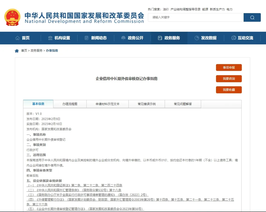 中资企业若想在境外发债,除满足当地证券市场的发债条件与合规要求外,首要考虑的便是中国国家发展和改革委员会(以下简称‘发改委’)的外债审核登记事宜。然而自 2023 年以来,发改委对于外债审核登记呈现收紧趋势,2023 年 1 月 10 日发改委发布了《企业中长期外债审核登记管理办法》( 国家发展和改革委员会令第 56 号,下称「《外债管理办法》」),并于 2 月 10 日施行,取代了之前作为管理企业借用中长期外债的主要规范性文件《国家发展改革委关于推进企业发行外债备案登记制管理改革的通知》(发改外资〔2015〕2044 号,下称「2044 号文」)。在 2044 号文时代,发改委对中资企业的外债管理为事前备案登记的管理方式,然而《外债管理办法》结束了这一局面,将外债管理改为了事前审核登记,未经审核登记的,不得借用外债。这也意味着自 2023 年 2 月 10 日起,境外上市的中资企业要在境外借用中长期外债首先需要取得发改委的外债审核登记同意。