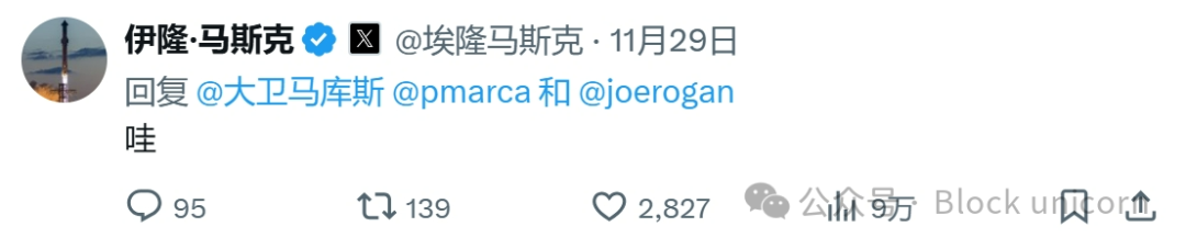 埃隆·马斯克(@elonmusk)对 Marcus 的帖子做出了「哇」的反应。