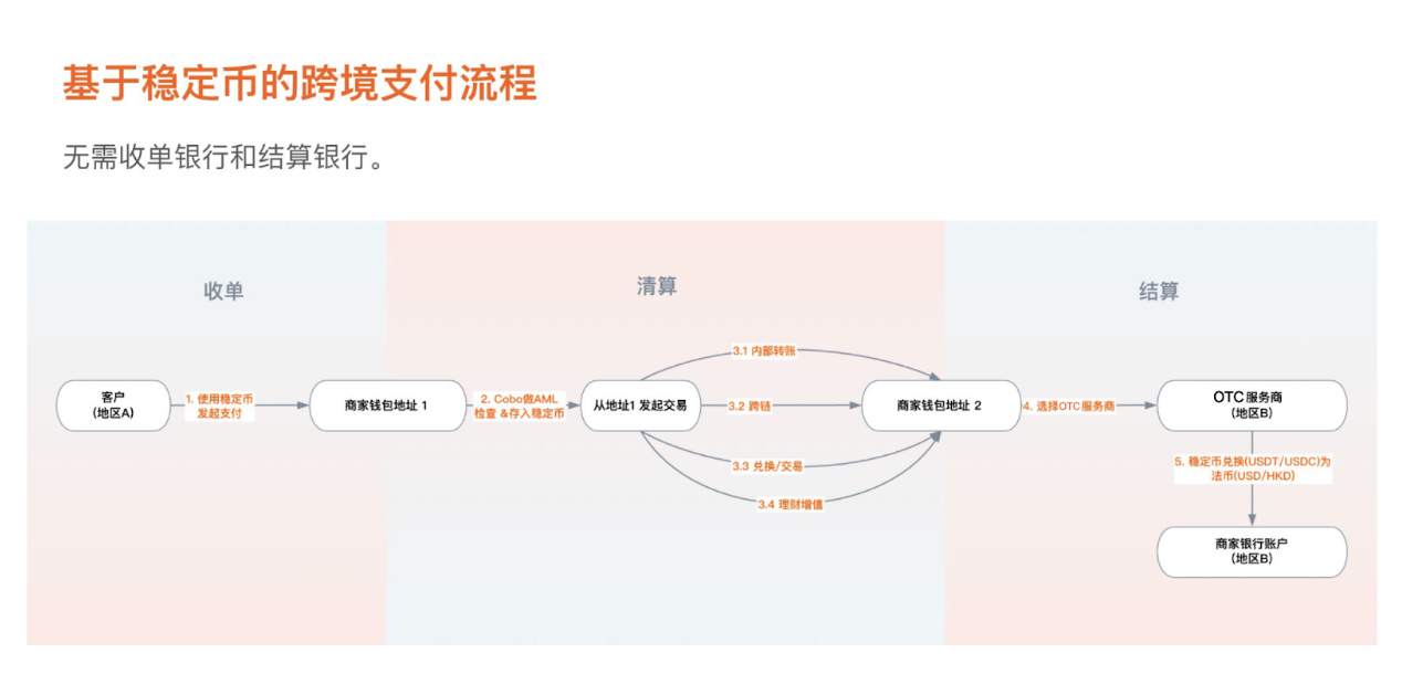 Cobo 的 Web3 跨境支付解决方案正是为了解决这些痛点而设计的。这一方案将复杂的区块链技术封装为易用的模块,让支付企业无需高昂投入,即可快速上线稳定币支付服务。