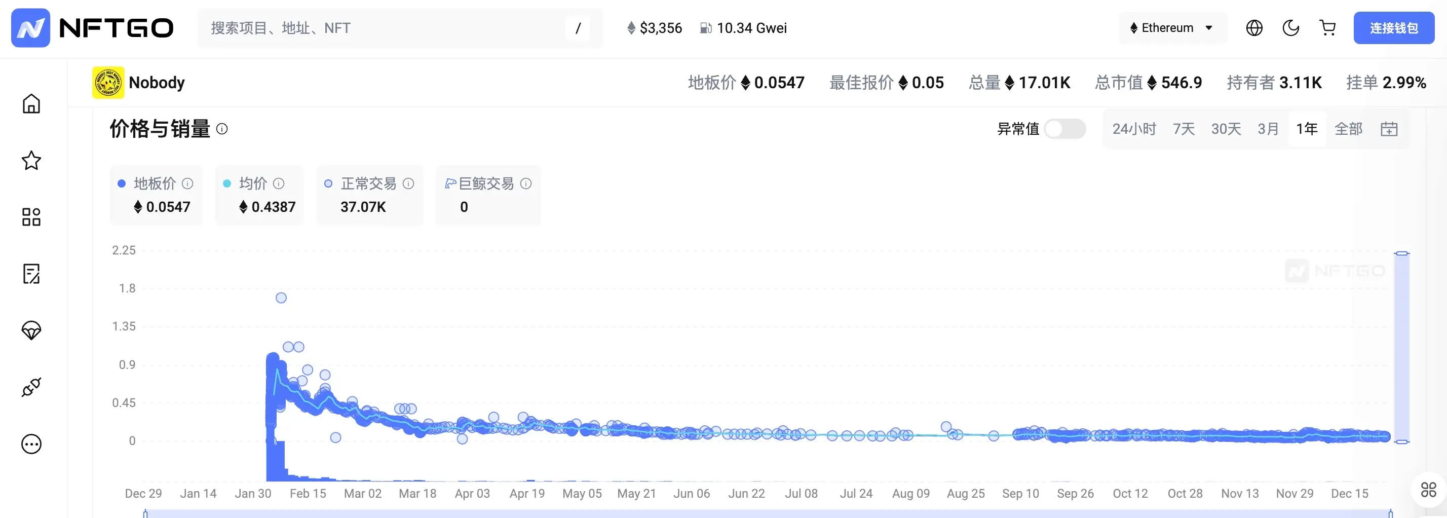 Nobody NFT 地板价相关信息,来源:NFTGo