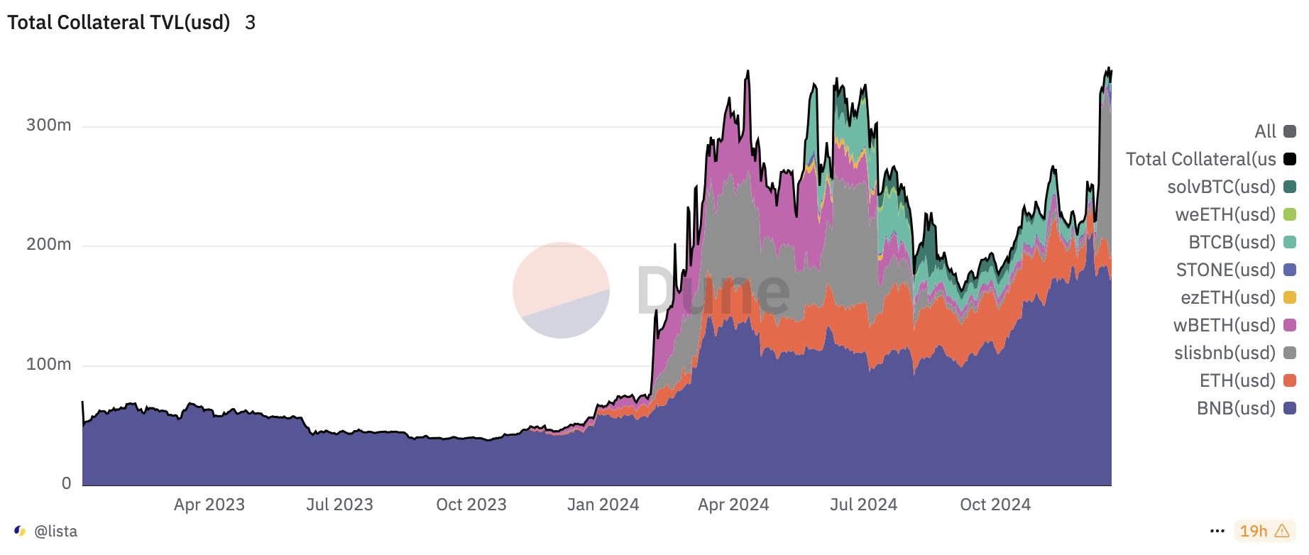 11 月,Lista DAO 发布多项重大更新,相继推出了 lisUSD 锚定稳定模块 (PSM)、slisBNB 到 clisBNB 的铸造转换、lisUSD meme 筹款等功能,最大化用户资产的流动性和收益。