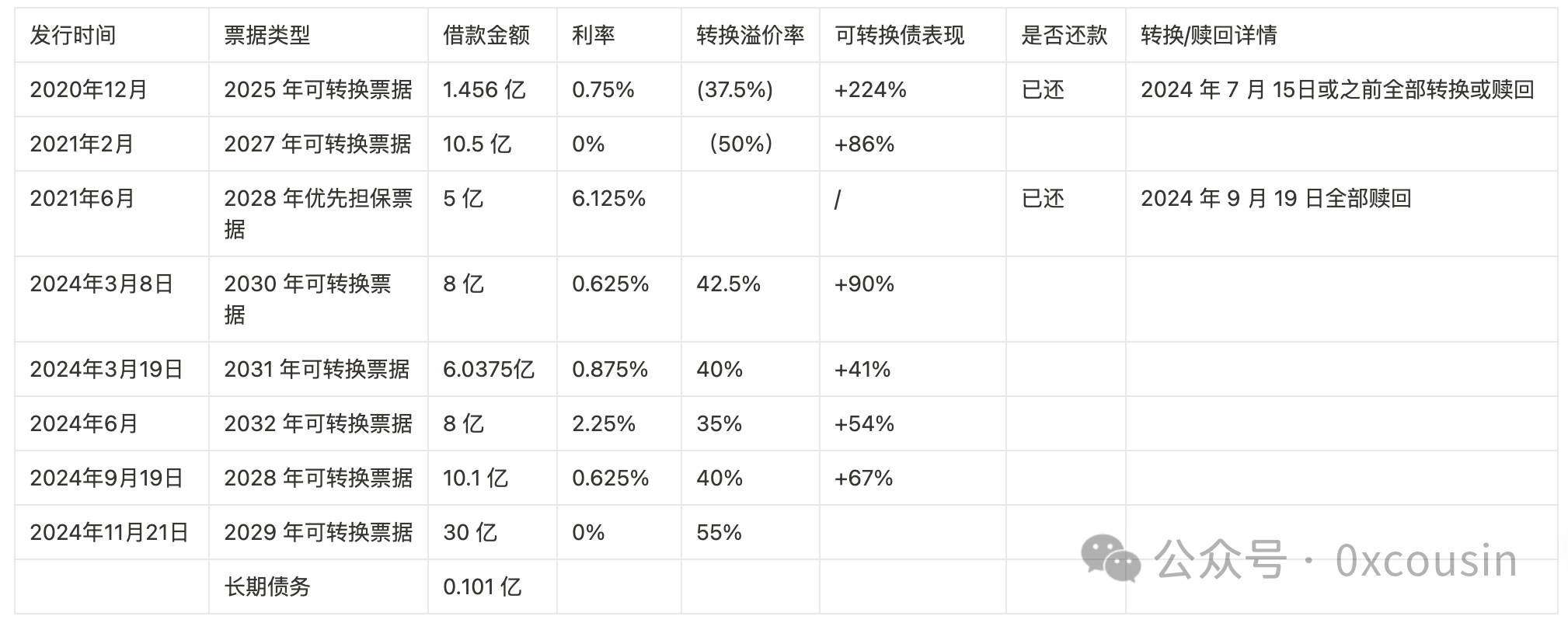 为了购买更多比特币,微策略开始采用发行可转债的方式融资买币。