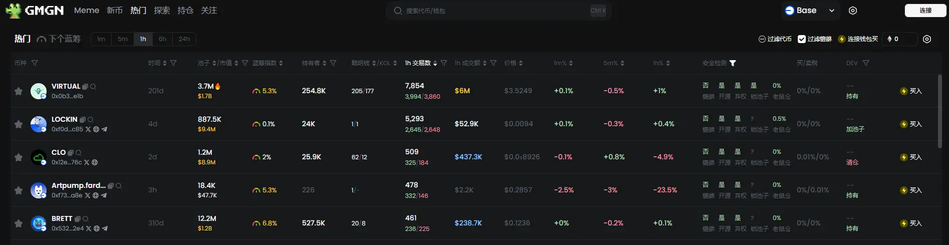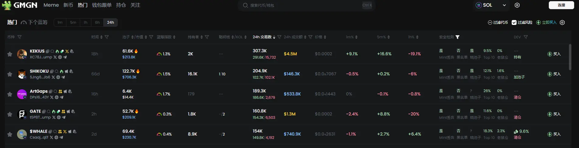 根据 Meme 代币追踪和分析平台 GMGN 行情数据显示,截止 12月30日 19:30 :