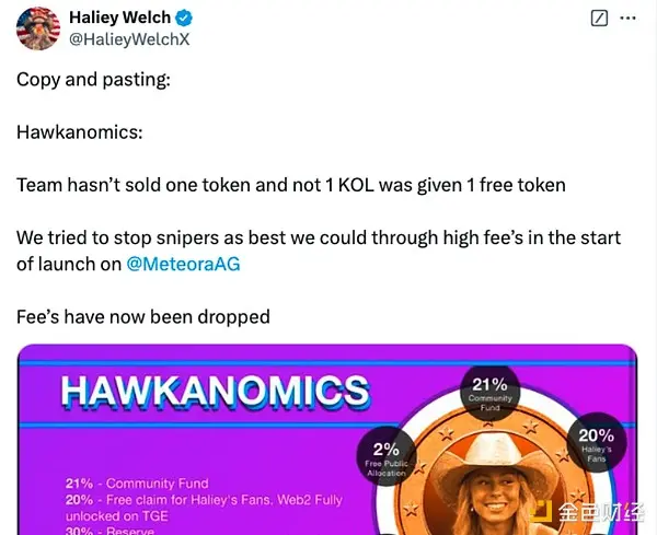 韦尔奇否认她的团队参与了任何内部活动,但到那时,HAWK 已经成为公关噩梦,她的 X 帖子上的社区注释指出该代币已经是半身像了。