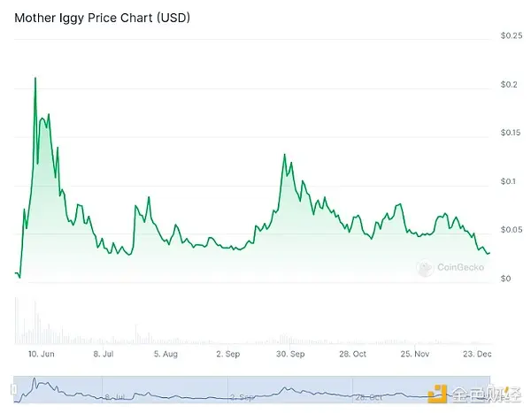 MOTHER 在推出后不久就短暂突破了 20 美分,但此后一直未能再上涨。来源:CoinGecko