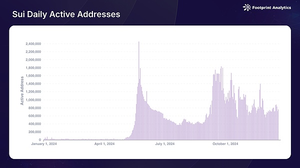 Sui 表现亮眼,代币价格飙升 461.6%,市值增长 1,363.8%。这一成功反映出市场对 Move 语言技术和生态系统发展的信心。Sui 专注于 DeFi 和游戏领域,包括 Telegram 游戏整合和创新的 SuiPlay0X1 游戏主机开发,展现了其对生态系统增长的全面布局。平台对用户体验和协议开发的重视创造了积极的网络效应,吸引了开发者和用户的共同参与。