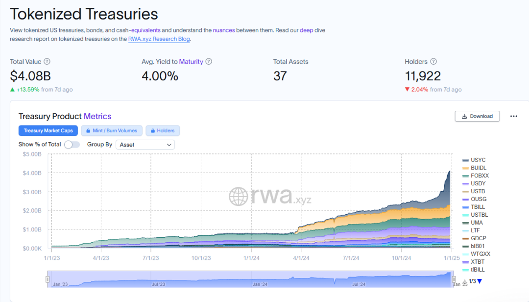现实资产代币化正在成为 DeFi 领域的重要趋势。据 Aiying 艾盈知悉美国国债代币化的规模已达到 40 亿美元。这一模式通过区块链技术提升了传统资产的流动性,同时也为美国在全球资本市场中创造了新的支配力量。通过控制 RWA 的生态,美国能够进一步推动国债的全球化流通。